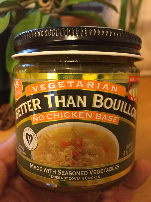 -3 tbsp “No Chicken Broth” from Better than Bouillon, dissolved into 5 cups hot water (or sub 5 cups chicken / vegetable stock)