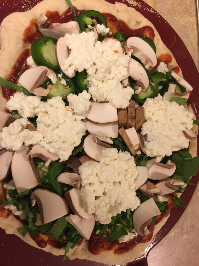 | 6. Dust your baking sheet or pizza stone with corn meal and gently slide the dough on, without disturbing any of the rising action. Gently oil the edges of the crust for an extra delicious crispy texture. 7. Par-bake the crust, for about 10 minutes, until dough is turning the slightest bit golden brown. Prep any toppings. 8. Dress your pizza up in vegan anchovies and cashew cheese or whatever you want. Bake for another 7 minutes, just enough for toppings to heat up and cheese to melt! Enjoy!!