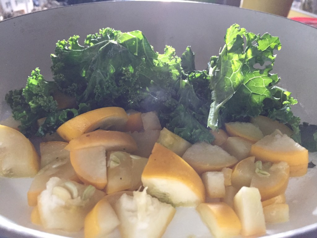 EGGPLANT!!!!! SUMMER SQUASH!!! KALE!!!! All so good, sautéed in a pan for just a little bit and then topped off with a couple over easy eggs.