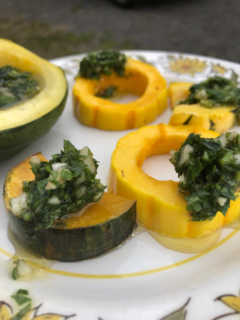 While it is typically suggested to accompany meat dishes, I can attest to chimichurri’s ability to spruce up some very simple veggies as well, which is obviously my preferred method of consumption.